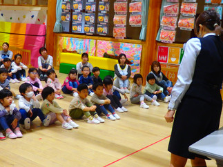 指導員さんからは子どもたちが分かりやすいペープサートを使った冬日の注意